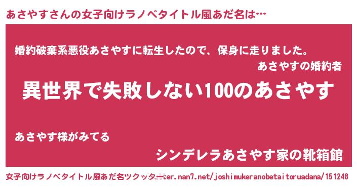 | 意味不明あだ名 | 『永久保存あさやす』『自称あさやす』 |