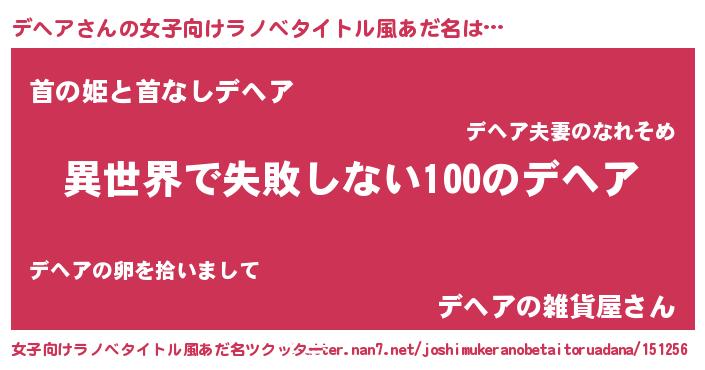 | 男性向けラノベタイトル風あだ名 | 『デヘアという概念が存在しない退屈な世界 』 |