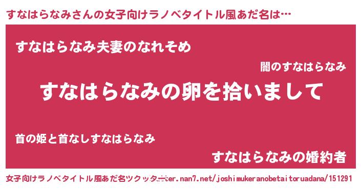 | 男性向けラノベタイトル風あだ名 | 『すなはらなみの嫁は女の子じゃないと思った?』 |