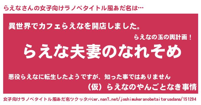 | ヘコむあだ名 | 『らえな(笑)』『らえにー』 |