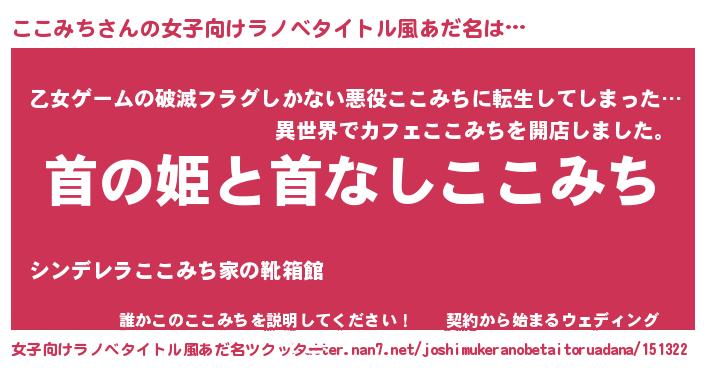 | 男性向けラノベタイトル風あだ名 | 『はたらくここみちさま!』 |