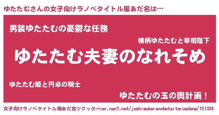 | 男性向けラノベタイトル風あだ名 | 『おまえをオタクにしてやるから、俺をゆたたむにしてくれ! 』 |