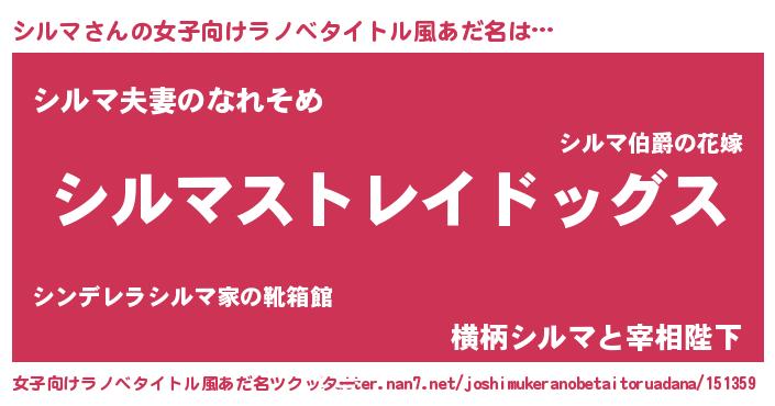 | 男性向けラノベタイトル風あだ名 | 『Re:シルマから始める異世界生活』 |