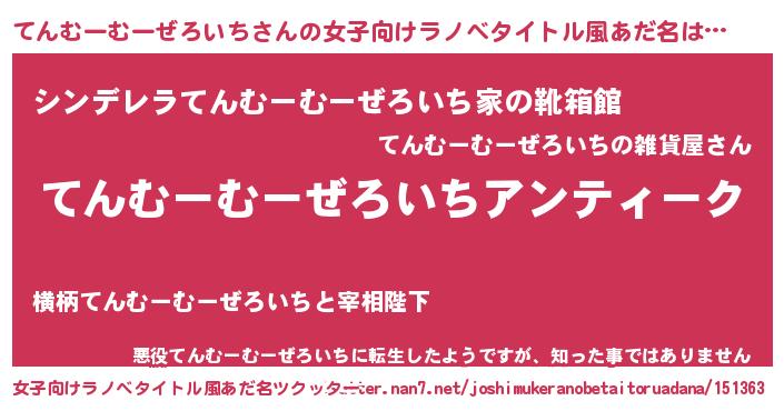 | 男性向けラノベタイトル風あだ名 | 『魔法科高校のてんむーむーぜろいち』 |