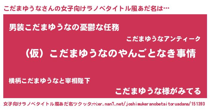 | 男性向けラノベタイトル風あだ名 | 『こだまゆうなの憂鬱』 |