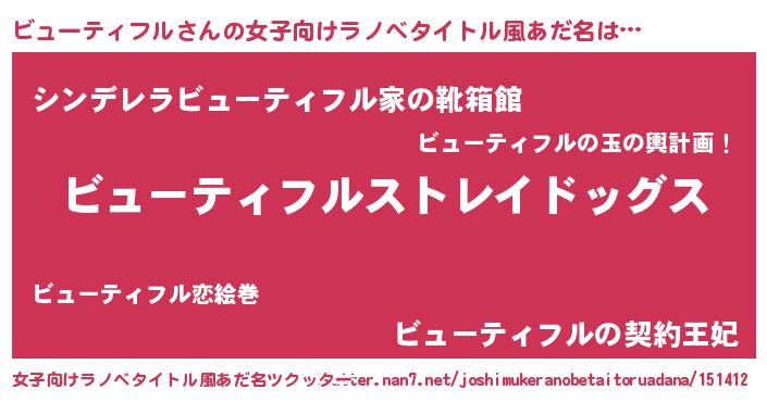 | 男性向けラノベタイトル風あだ名 | 『Re:ビューティフルから始める異世界生活』 |