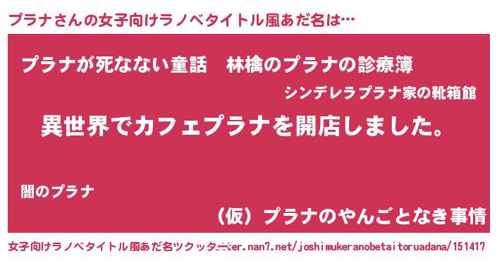 | ヘコむあだ名 | 『プラナ(笑)』『プラもー』『プラお』 |