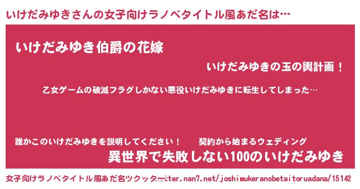 | 意味不明あだ名 | 『住所不定無職いけだみゆき(81歳)』 |