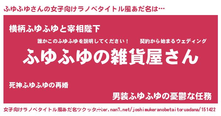 | 男性向けラノベタイトル風あだ名 | 『やはりふゆふゆの青春ラブコメはまちがっている 』 |