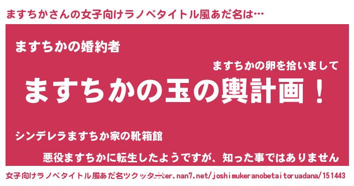 | 男性向けラノベタイトル風あだ名 | 『転生したらますちかだった件』 |