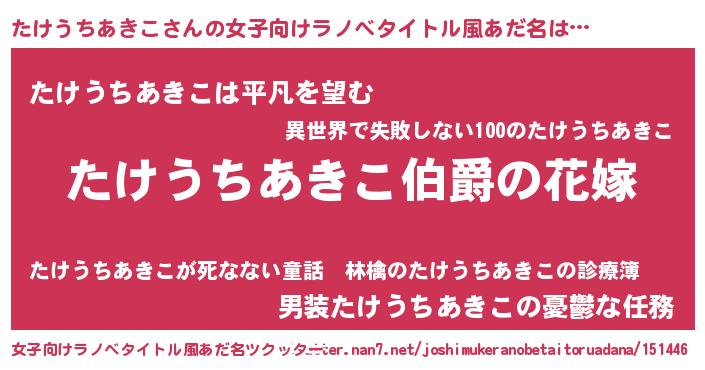 | 肩書あだ名 | 『たけうちあきこ総理大臣』 |
