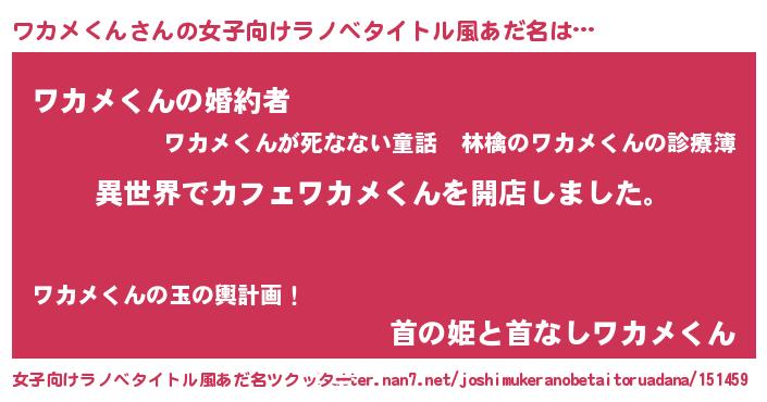 | 男性向けラノベタイトル風あだ名 | 『誰もが恐れるあのワカメくんが、ぼくの専属メイドになるようです。』 |