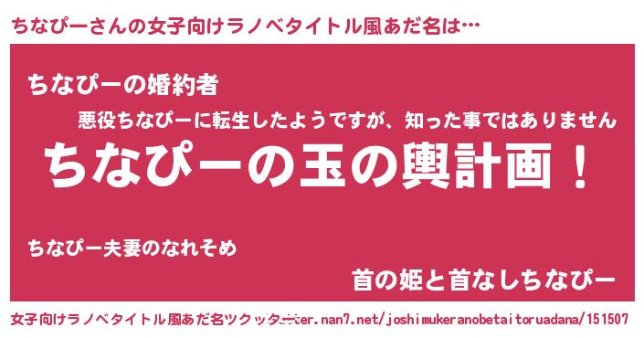 | 胡散臭い通販商品みたいなあだ名 | 『世界が平和になる高級そうな皿…その名も「ちなぴー」』 |