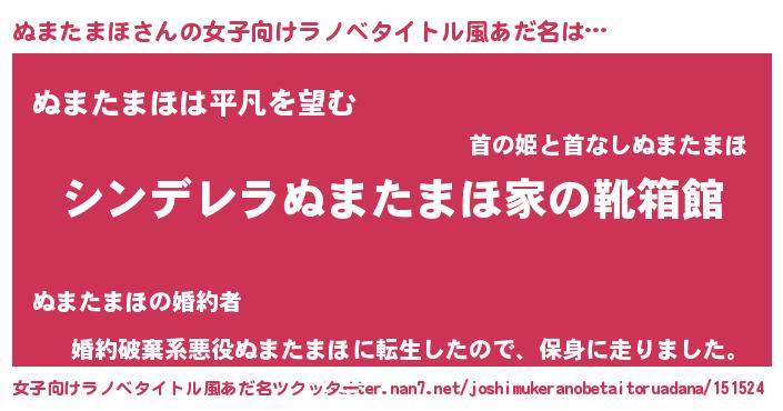 | 胡散臭い通販商品みたいなあだ名 | 『信頼と実績のネックレス…その名も「ぬまたまほ」』 |