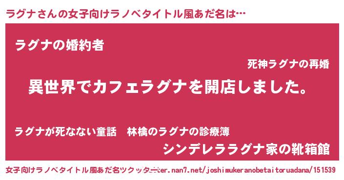 | ファンタジー風あだ名 | 『ラグディッシュ』『エターナルラグナー』 |