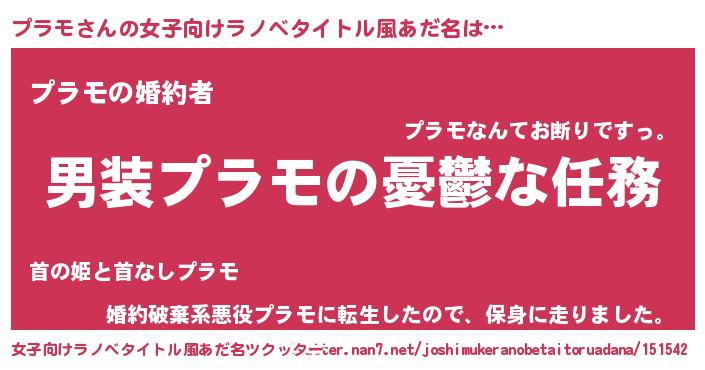 | 男性向けラノベタイトル風あだ名 | 『冴えないプラモの育てかた』 |
