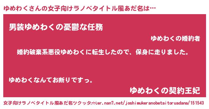 | 男性向けラノベタイトル風あだ名 | 『転生したらゆめわくだった件』 |