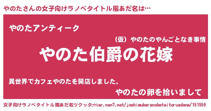 | 男性向けラノベタイトル風あだ名 | 『やはりやのたの青春ラブコメはまちがっている 』 |