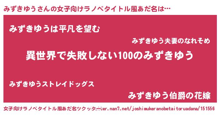 | 胡散臭い通販商品みたいなあだ名 | 『絶対に幸福をもたらす健康食品…その名も「みずきゆう」』 |