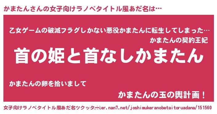 | 男性向けラノベタイトル風あだ名 | 『はたらくかまたんさま!』 |