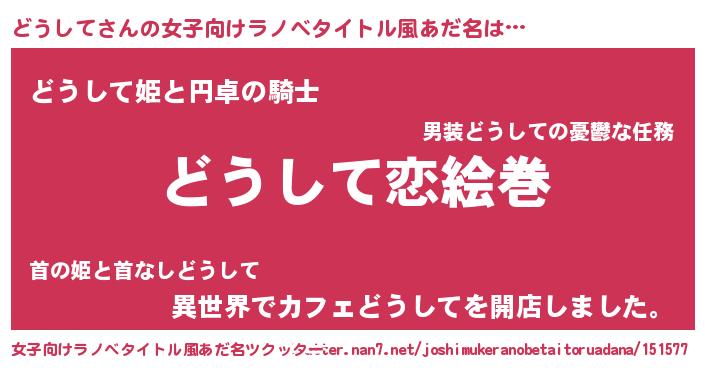 | ヒーロー風カッコイイあだ名 | 『慈愛の使者どうして』『ネオドウシテ』 |