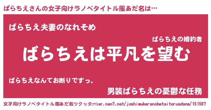 | 男性向けラノベタイトル風あだ名 | 『ダンジョンにばらちえを求めるのは間違っているだろうか』 |