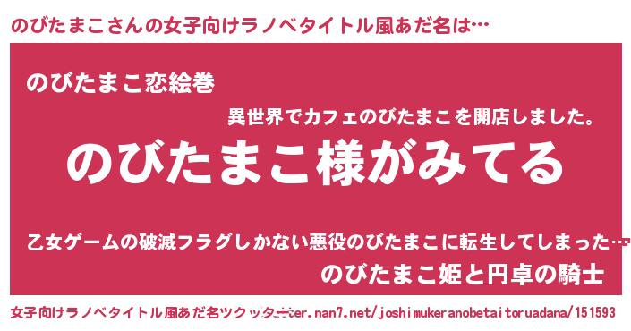 | 男性向けラノベタイトル風あだ名 | 『のびたまこの嫁は女の子じゃないと思った?』 |