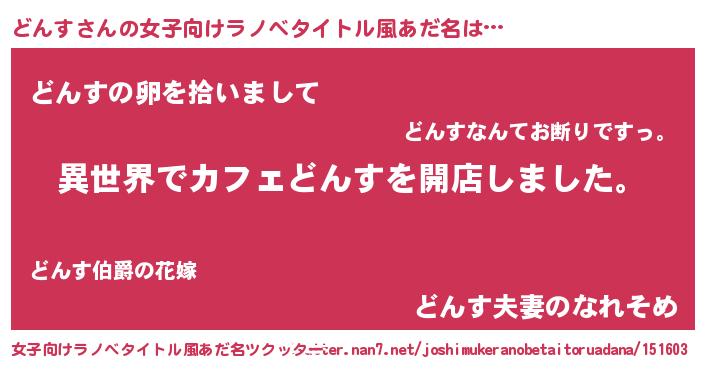 | 胡散臭い通販商品みたいなあだ名 | 『前代未聞の健康食品…その名も「どんす」』 |