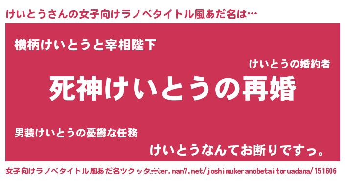| ヒーロー風カッコイイあだ名 | 『天空の使者けいとう』『ネオケイトウ』 |