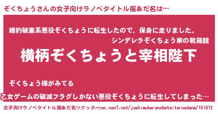 | 胡散臭い通販商品みたいなあだ名 | 『世界中を虜にした100年もののヴィンテージワイン…その名も「ぞくちょう」』 |