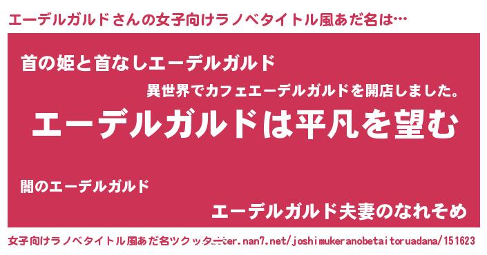 | 胡散臭い通販商品みたいなあだ名 | 『信頼と実績のサプリメント…その名も「エーデルガルド」』 |