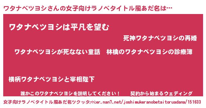 | 意味不明あだ名 | 『住所不定無職ワタナベツヨシ(40歳)』 |