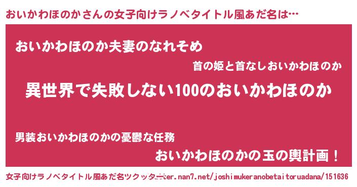 | ヘコむあだ名 | 『おいかわほのか(笑)』『おいを』 |