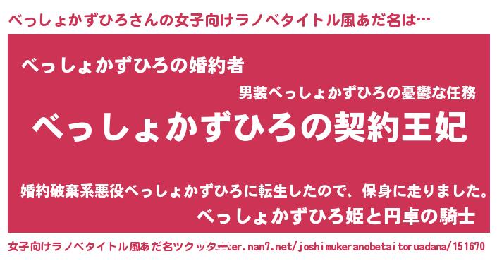 | 男性向けラノベタイトル風あだ名 | 『べっしょかずひろという概念が存在しない退屈な世界 』 |