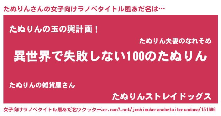 | 男性向けラノベタイトル風あだ名 | 『たぬりんという概念が存在しない退屈な世界 』 |