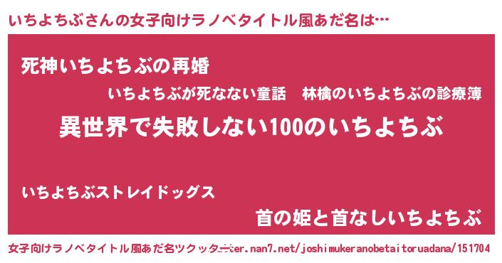 | 男性向けラノベタイトル風あだ名 | 『いちよちぶという概念が存在しない退屈な世界 』 |