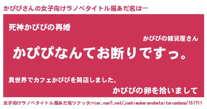 | 男性向けラノベタイトル風あだ名 | 『魔法科高校のかぴぴ』 |