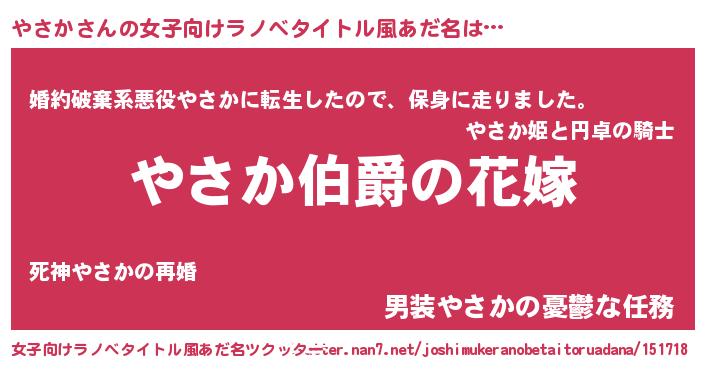 | ファンタジー風あだ名 | 『エターナルヤサカー』『カークヤサラー』 |