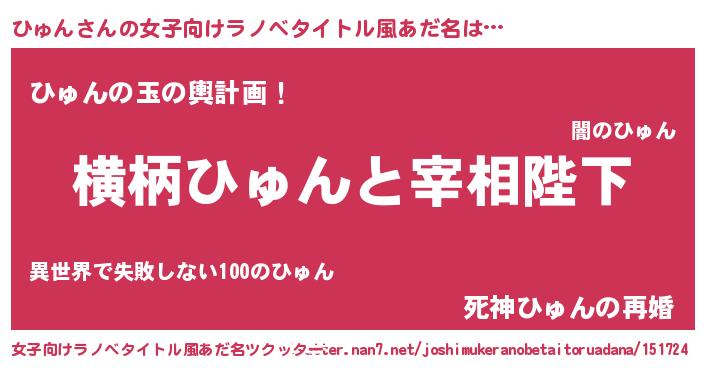 | ヒーロー風カッコイイあだ名 | 『慈愛の使者ひゅん』『究極戦士ヒュン』 |
