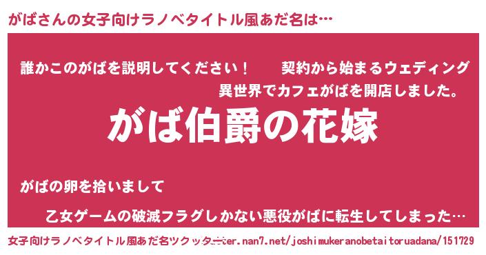 | 男性向けラノベタイトル風あだ名 | 『うちの娘の為ならば、俺はもしかしたらがばも倒せるかもしれない。』 |