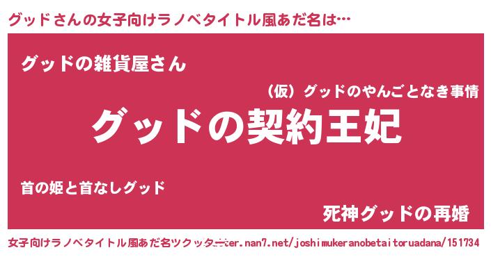 | 胡散臭い通販商品みたいなあだ名 | 『来世でも幸せになれる健康食品…その名も「グッド」』 |