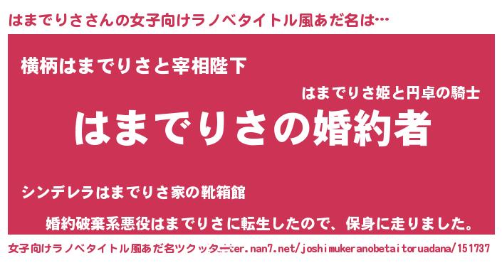 | 胡散臭い通販商品みたいなあだ名 | 『運命の人と巡り会える高級そうな壺…その名も「はまでりさ」』 |