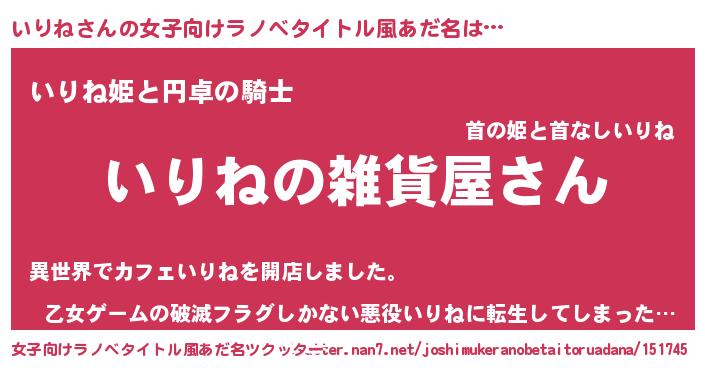 | 胡散臭い通販商品みたいなあだ名 | 『幸せが訪れる高級そうな壺…その名も「いりね」』 |