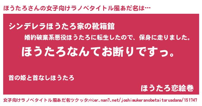 | 男性向けラノベタイトル風あだ名 | 『魔法科高校のほうたろ』 |