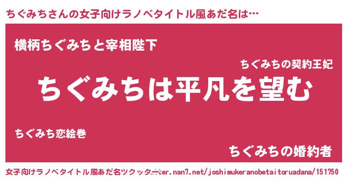| 胡散臭い通販商品みたいなあだ名 | 『信頼と実績のペンダント…その名も「ちぐみち」』 |