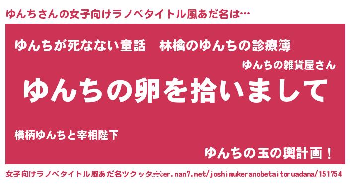 | 男性向けラノベタイトル風あだ名 | 『ゆんちの嫁は女の子じゃないと思った?』 |