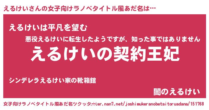 | 胡散臭い通販商品みたいなあだ名 | 『来世でも幸せになれる健康食品…その名も「えるけい」』 |