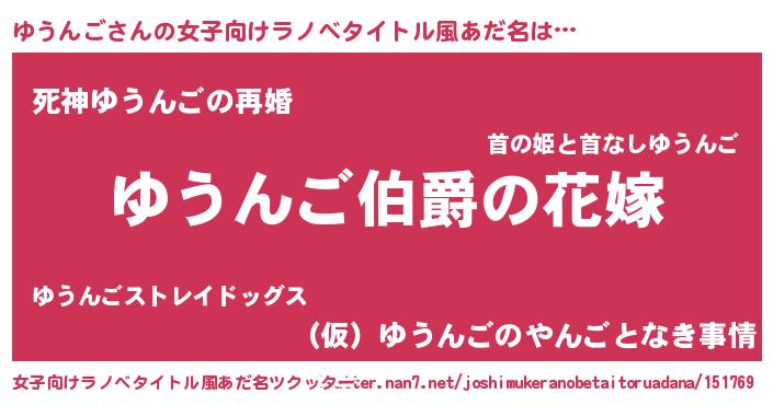 | 男性向けラノベタイトル風あだ名 | 『やはりゆうんごの青春ラブコメはまちがっている 』 |