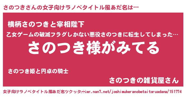 | 男性向けラノベタイトル風あだ名 | 『さのつきの嫁は女の子じゃないと思った?』 |