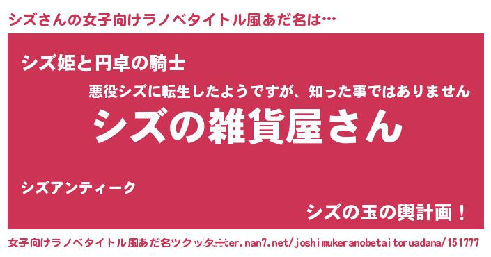 | 男性向けラノベタイトル風あだ名 | 『やはりシズの青春ラブコメはまちがっている 』 |